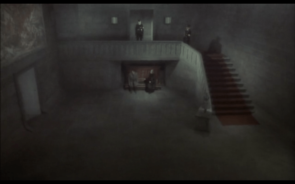 E quindi preferire il nazifascismo in nome della superficiale e sedicente “difesa” di valori che sembrano fondanti (famiglia, patria, popolo), è ignorare quello che è palese, quello che inconsciamente *si sa*: cioè che la sedicente “difesa” di quelle cose la si ottiene con l’*attacco* di altre cose… che quella difesa è in realtà sterminio… [quella superficie di “difesa”, come le mura di Berghof e come le inquadrature sghembe, si vede essere, invece, palesemente storta: quelle fondamenta che sembrano “solide” e “simmetriche”, invece sono “ritorte”, come tutto il film]