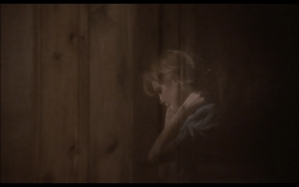 Una volta vestita, Eva va verso l’ascensore, ma quando esce dalla stanza sembra sconvolta… e, uscendo, letteralmente scompare… la sua immagine diventa trasparente, con, perfino, un effetto sonoro strange a sottolineare l’evento…
