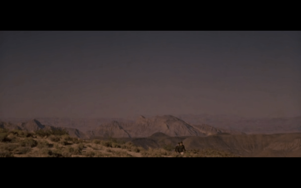 L’altro brano della colonna sonora di Gerry è Für Alina, composto anch’esso da Pärt (per solo pianoforte, del 1976): un Pärt che è per Gerry quello che György Ligeti è per molti film di Kubrick (e soprattutto per Eyes Wide Shut, in cui il pianoforte del secondo movimento della Musica ricercata di Ligeti [1969] contrappunta le vicende come Für Alina fa con le “scene” di Gerry)… [questo uso della musica fa pensare, anche, al “primo” Malick, a Badlands (1973) e Days of Heaven (1978), che inizia con la musica dell’Aquarium del Carnaval des Animaux di Saint-Saëns]