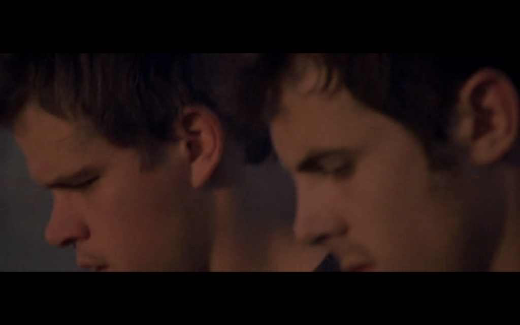 Mentre Damon e Affleck si lasciano andare allo sconforto, seduti ognuno distante dall’altro, la macchina gira su se stessa, ma in quel giro vede i personaggi, prima gira intorno a uno, prima intorno all’altro…