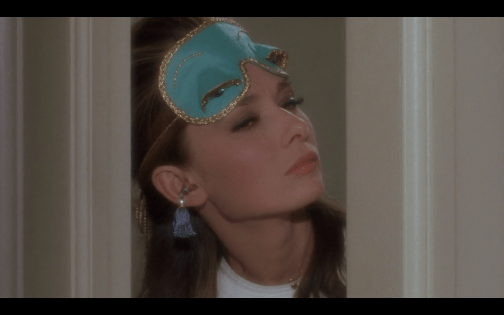 come se tutto il low profile, tutto il lusso nascosto nell’economia, tutti i piani fermi esprimenti il complesso degli specchi, dei riflessi, della noia, fosse tutto TELEOLOGICAMENTE usato per portare al finale, dove Paul finalmente riesce a parlare chiaro, dove il main theme (la canzone Moon River, onnipresente, cantata e fischiettata da tutti come a designare un modello mentale inceppato), finalmente scroscia come la pioggia in colonna sonora, come succede per il tema di Emilia Marty nel Makropoulos di Janáček, o come si diceva in Winterstürme wichem dem Wonnemond nelle Musiche della primavera [si deve anche considerare che quando si sente la canzone intera, cantata da Holly, a un terzo del film, è in una sequenza perfino onirica, agita dalla Holly figurina]… un finale dove, finalmente, quei personaggi cominciano a vivere…