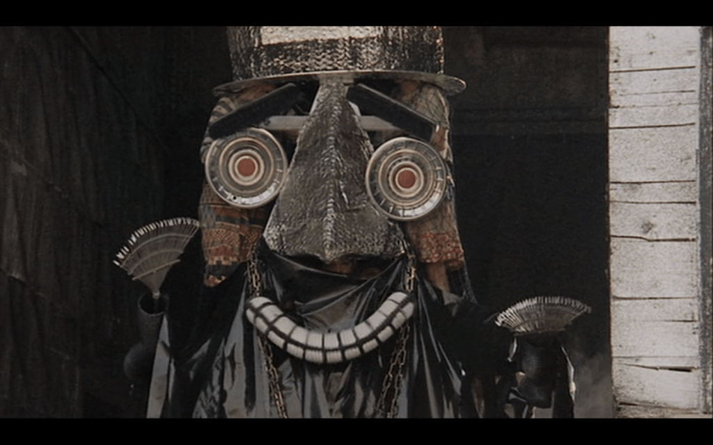 Infatti la natura posticcia del mascherone villain, oltre che la gestica esagitata da Living, il trucco esposto e iperbolico, le marionette e le facce imbecilli degli attori, potrebbero alludere, lo si diceva, a una presa in giro delle liturgie cristiane…