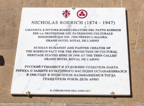 ovvero Nikolaj Rérich, il grande pittore etnologo che NON solo ha contribuito assai alla nascita del Sacre du printemps di Stravinskij (vedi le “rece” della lettura al Maggio di Jurovskij), ma ha anche, nel 1935, cercato in tutti i modi di creare l’utopia della salvaguardia del patrimonio artistico dai bombardamenti…