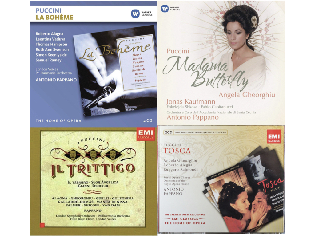 Non è esagerato dire che di Puccini ha registrato praticamente tutto (tranne forse Edgar, Le Villi, Fanciulla, però da lui molto studiata, e magari Manon): Bohème (’95), Tosca (2000, per il film di Benoît Jacquot), Butterfly (2008), Rondine (’96: è stato finora l’ultimo a fissare l’opera in studio, sfidando il risultato di Maazel di 15 anni prima), Trittico (’97), Turandot (2022), a cui si aggiungono decine e decine di performance dal Covent Garden di Londra, quasi tutte filmate…