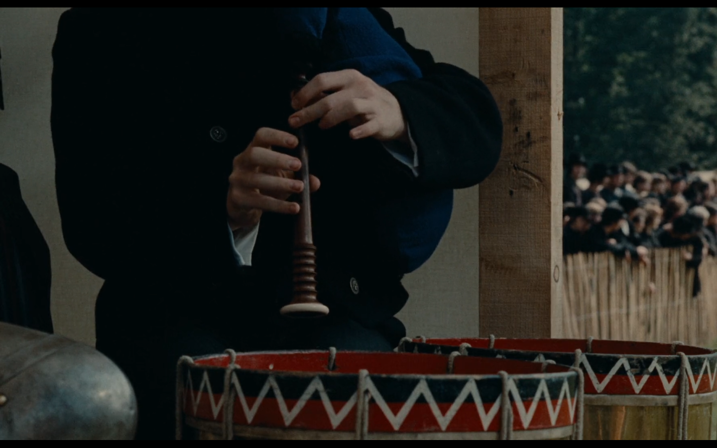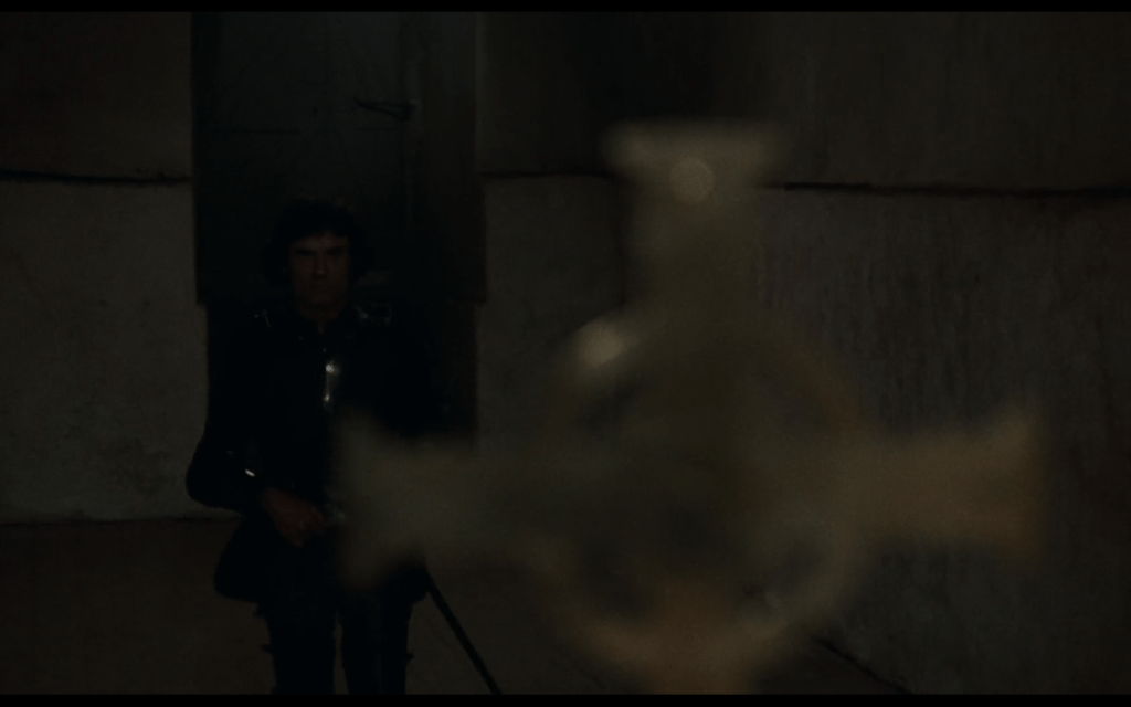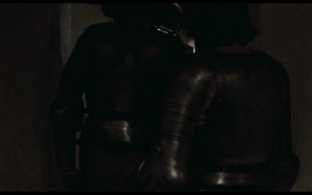 in tutto il film è anche la conduzione del sonoro a creare un mondo non lineare: le battaglie, spesso, manco si vedono: vengono sentite nel sonoro, ogni tanto gratificato dalla musica (di Philippe Sarde), medievaleggiante e molte volte intradiegetica, e anche se extradiegetica per nulla di commento ma quasi slegata dall’azione e dalle immagini…