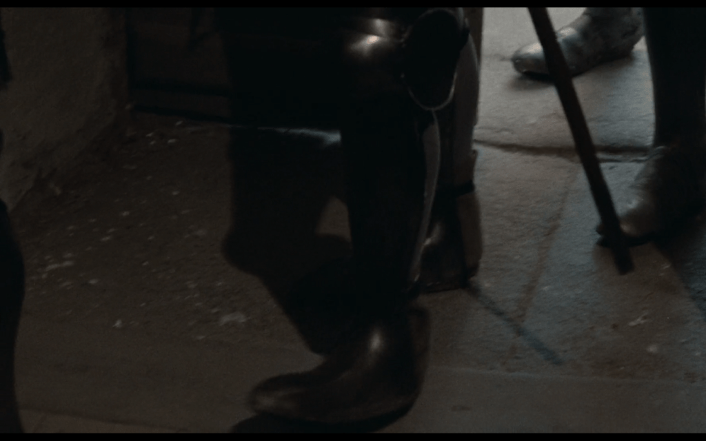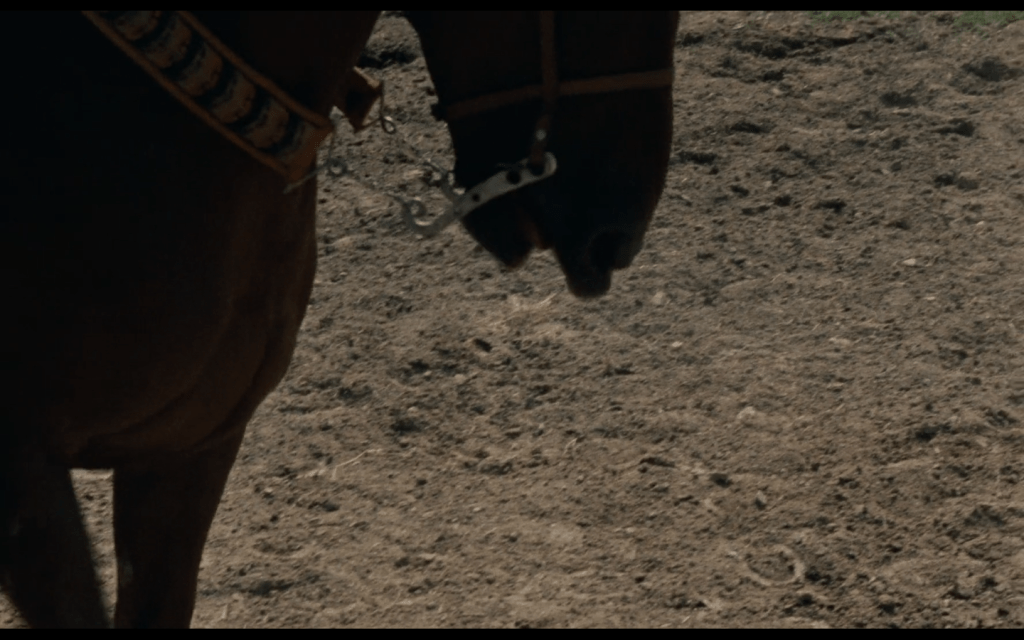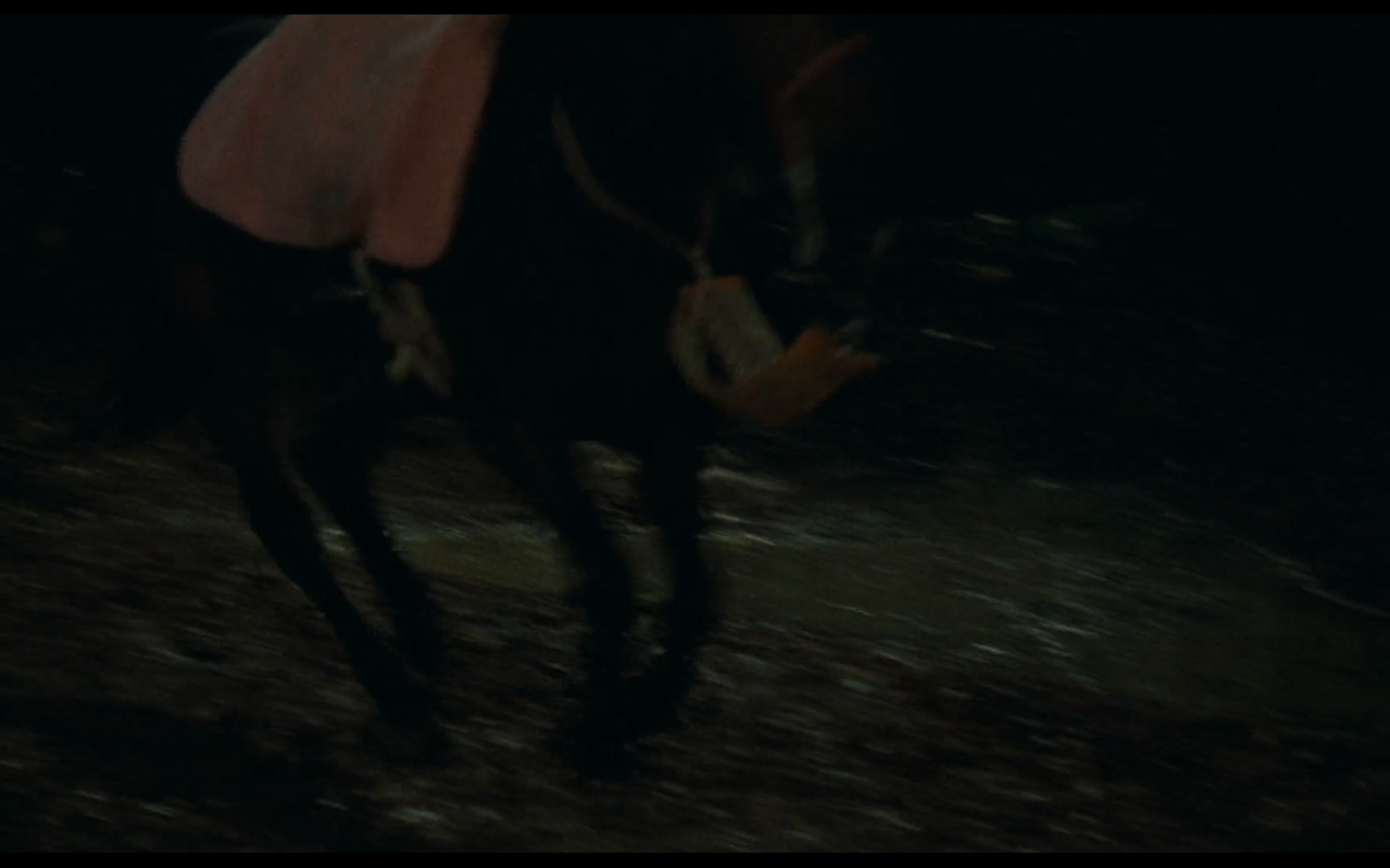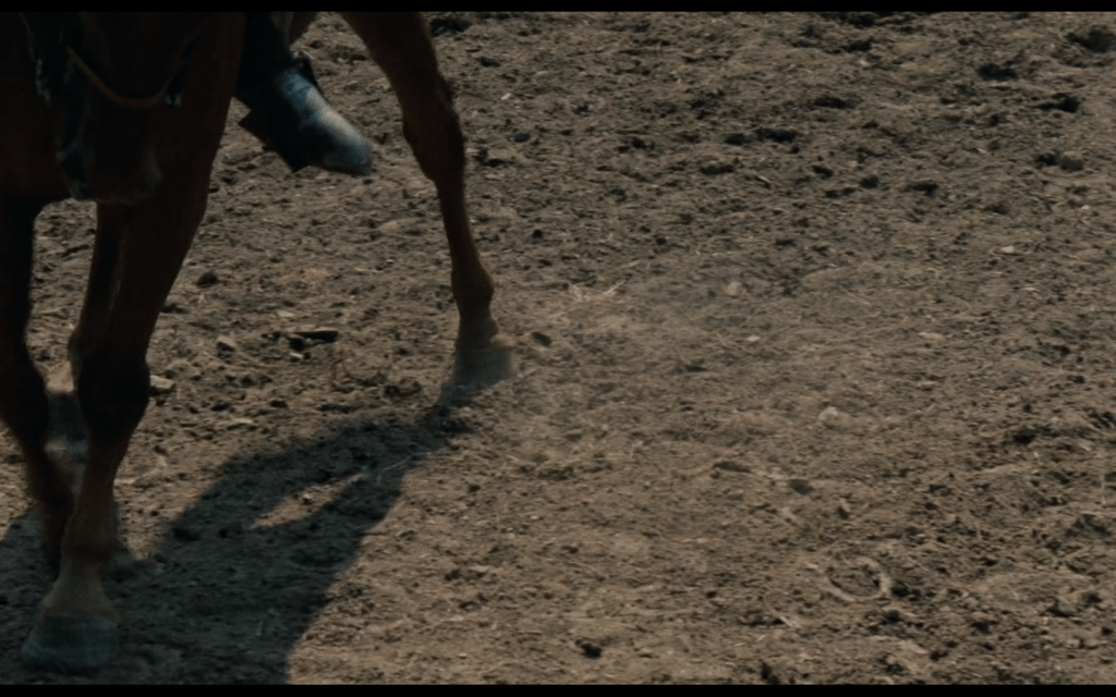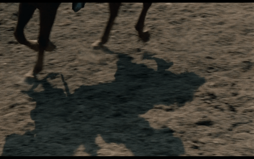 la macchina da presa spesso inquadra il terreno, i piedi dei cavalieri e gli zoccoli dei cavalli, lasciando completamente acefale le figure principali, come se l’effettiva identità dei personaggi fosse del tutto secondaria rispetto al contorno pittorico