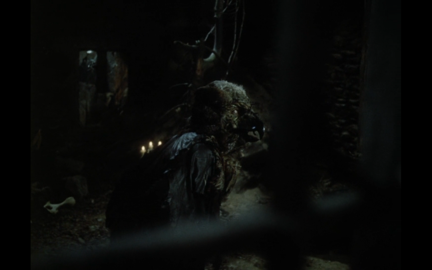 durante l’aggressione, la Bestia sembra fare solo da osservatore, e appare da una breve soggettiva quasi onirica, in mezzo alle fronde, di uno degli spaventatissimi trasportatori aggrediti, di cui vediamo l’atto del guardare dettagli fuori dall’inquadratura: un vedere (è coinvolto anche l’occhio di un cavallo) assai angoscioso…